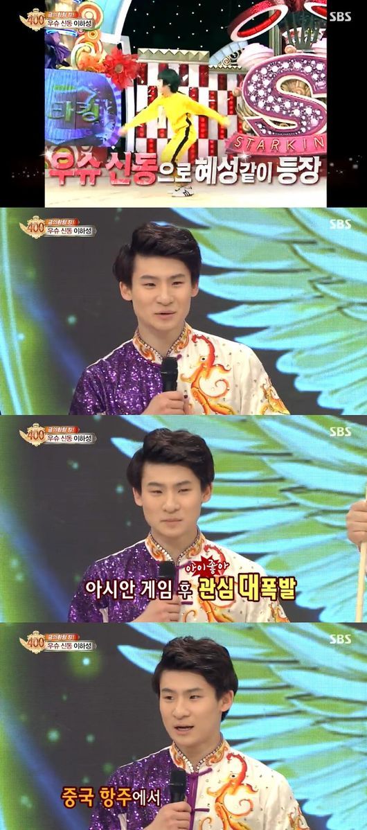 이하성은 “중국에서 전지 훈련 중 ‘스타킹’이 400회라서 오늘 아침에 한국에 왔다”라면서 “우슈 신동으로 15살 때 ‘스타킹’에 나왔다”라고 말했다.