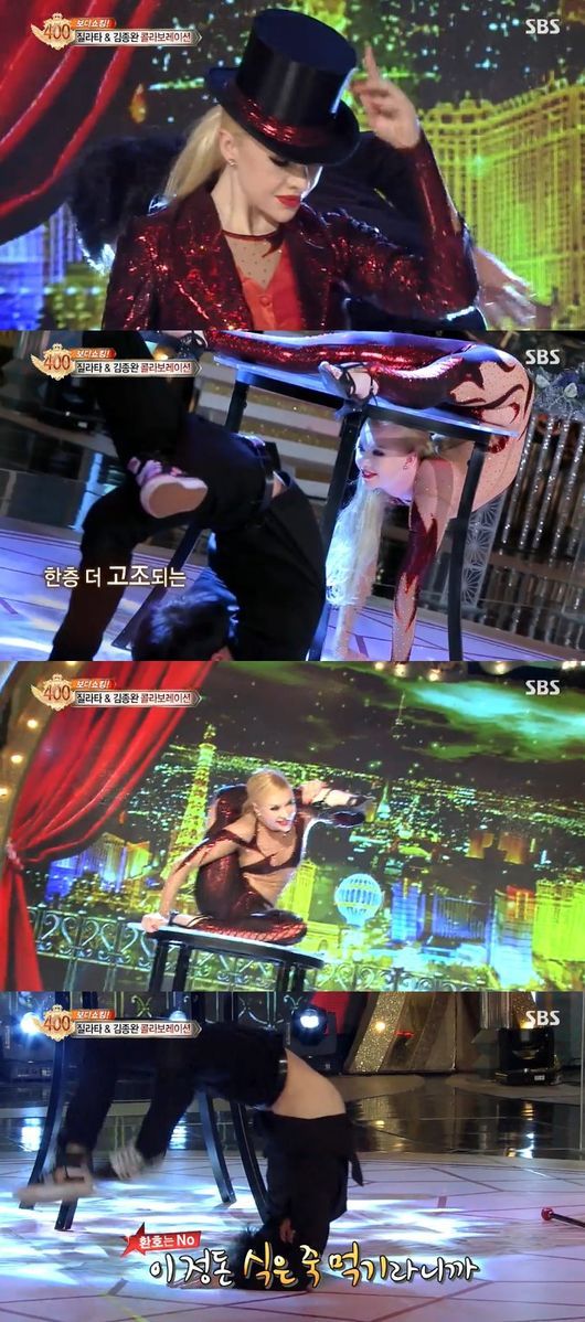 김종완 씨와 질라타는 7일 방송된 SBS 예능프로그램 ‘놀라운 대회 스타킹’ 400회 특집에서 유연성을 자랑할 수 있는 무대를 꾸몄다.
