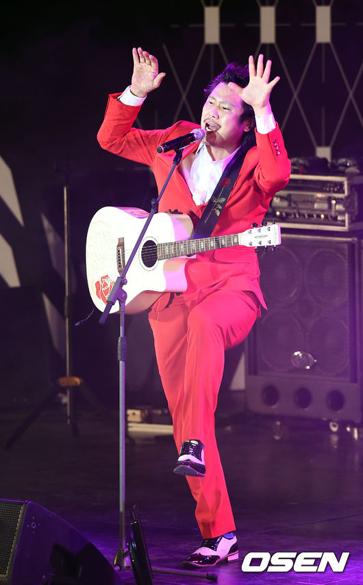 장미여관 육중완이 화려한 무대를 펼치고 있다.