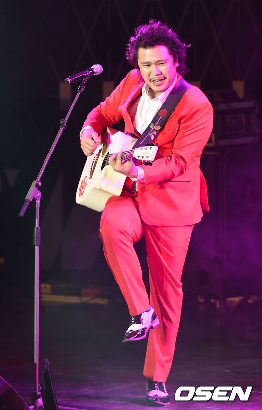 장미여관 육중완이 화려한 무대를 펼치고 있다.