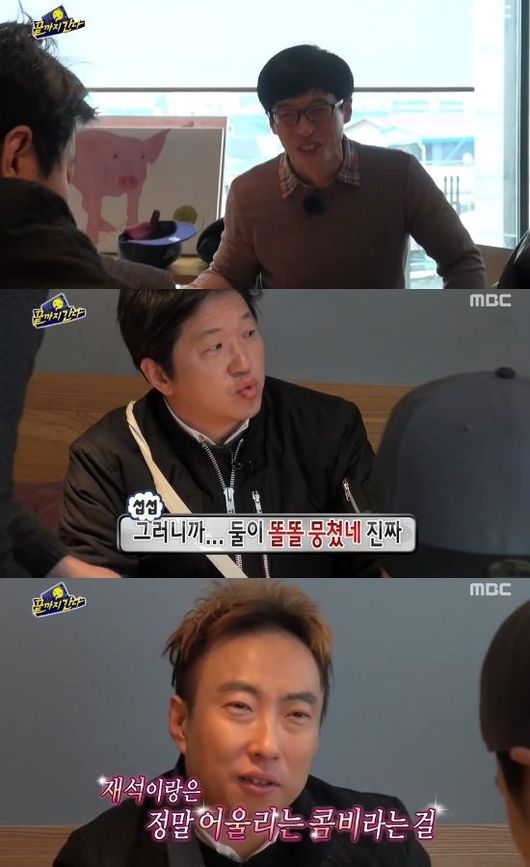 이에 정형돈이 "둘이 똘똘 뭉쳤다. 안 끼워준다"고 말하자, 박명수는 "오늘 또 느꼈다. 재석이랑 나랑은 어울리는 콤비라는 걸"이라고 말해 웃음을 자아냈다.