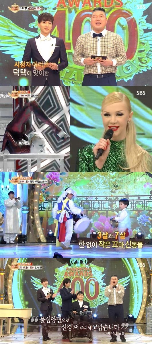 7일 방송된 SBS 예능프로그램 ‘놀라운 대회 스타킹’ 400회 특집은 ‘스타킹 어워즈’라는 이름으로 그동안 출연해서 큰 화제에 올랐던 출연자들이 함께 했다.