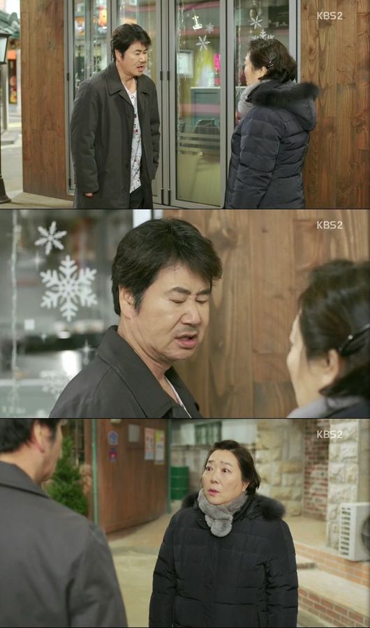 7일 오후 방송된 KBS 2TV '가족끼리 왜 이래'(극본 강은경 연출 전창근)에서는 여행을 간 줄 알았던 순봉(유동근 분)을 집 앞에서 발견한 순금(양희경 분)의 모습이 그려졌다.