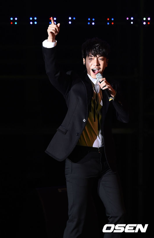 가수 이승기가 화려한 무대를 펼치고 있다.