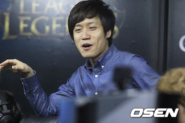 4일 오후 서울 용산 온게임넷 e스포츠 상설경기장에서 '2015 LOL 챔피언스(이하 롤챔스)' 코리아 스프링 15회차 2경기 KT 롤스터와 IM의 경기가 열렸다. 1세트를 승리한 IM 김목경 코치가 선수들과 2세트 밴픽에 대해 의견을 나누고 있다.