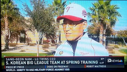 미국 유력방송인 NBC 애리조나는 지난 7일(이하 한국시간) 애리조나주 글렌데일에서 전지훈련 중인 LG 트윈스를 집중소개해 화제를 모았다. 이 방송사는 2분30초 가량에 걸쳐 한국의 프로야구단이 따뜻한 애리조나를 찾아 전지훈련에 한창이라며 남상건 LG 트윈스 사장을 비롯해 메이저리거 출신의 외국인 타자 한나한, 그리고 역시 빅리거 출신인 봉중근 등을 인터뷰하며 아침프로그램에서 현장 리포터발로 3차례에 걸쳐 방송했다.