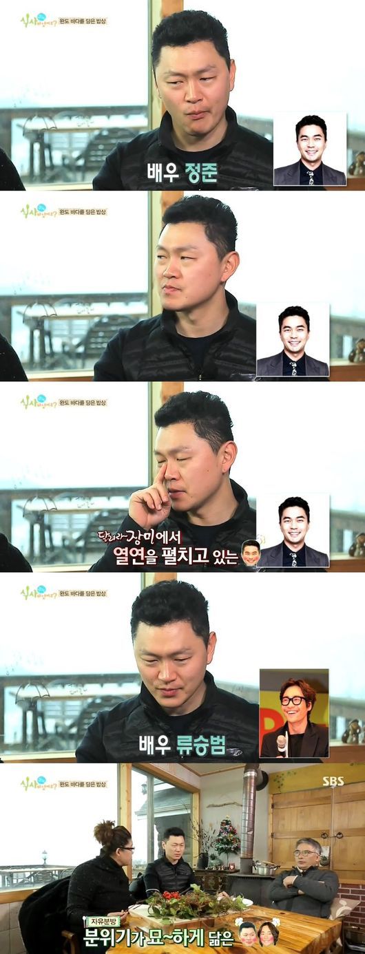 이날 완도 바다를 담은 밥상을 먹던 중 함께 먹고 싶은 친구가 있느냐는 질문에 류승범과 정준을 꼽았다.