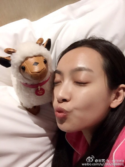 빅토리아는 7일 오후, 자신의 중국 SNS 웨이보에 "잘자요~" 라는 짧은 인사말과 함께 자신의 사진을 게재했다.