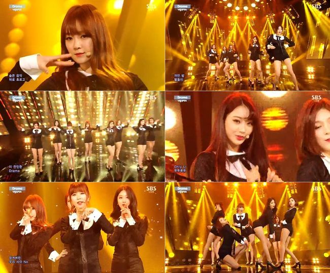 나인뮤지스는 8일 오후 방송된 SBS 음악프로그램 ‘인기가요’에서 신곡 ‘드라마’ 무대를 선보였다.