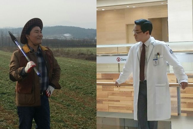 카우보이 모자를 쓰고 한 손에 농기구를 든 채 여유롭게 광활한 대지를 바라보는 설정과 새하얀 의사 가운 차림의 안경을 쓴 이지적인 모습이 완벽한 대조를 이룬다.