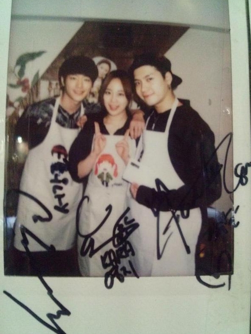 사진 속에는 서강준, 허영지, 잭슨의 앞치마를 입은 모습이 담겨 있다. 세 사람은 나란히 선 채 훈훈한 미소를 짓고 있어 마치 사이 좋은 남매처럼 보인다. 사진 위로는 세 사람의 사인도 들어가 있다.