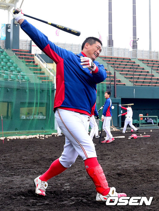 KIA 최희섭이 타격 훈련을 하고 있다.