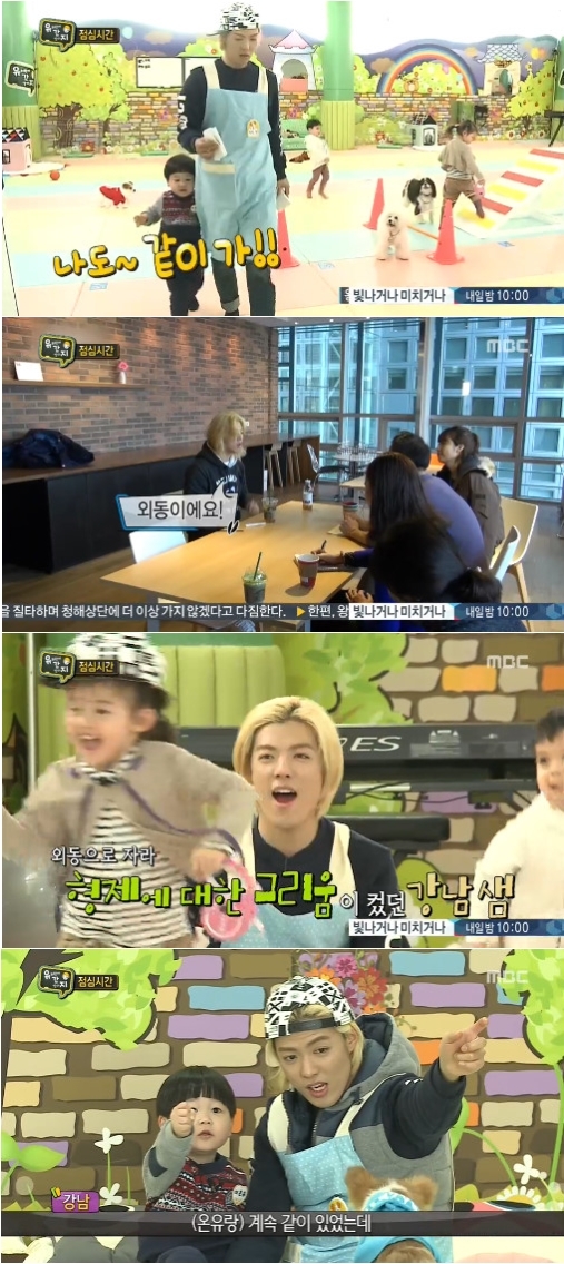 이날 "강남을 가장 좋아한다"는 온유는 강남의 뒤를 졸졸 따라다녔다. 강남도 그런 온유가 싫지 않은 듯 했다.