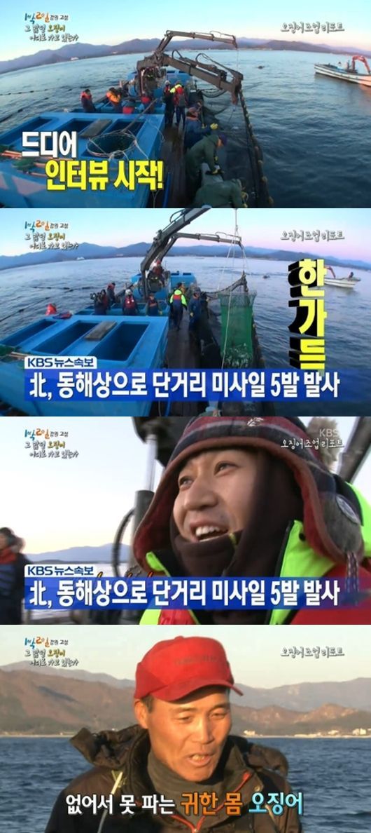 8일 방송된 KBS 2TV 예능프로그램 ‘해피선데이-1박2일’에는 강원 고성에서 그 많던 오징어는 어디로 가고 있는가 특집을 진행하는 멤버들의 모습이 그려졌다.