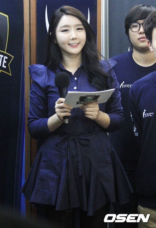 전남과학대학교 '드림'(이하 CTU)은 8일 오후 서울 강남구 역삼동 인벤 강남스튜디오에서 벌어진 '2015 리그오브레전드 대학생 배틀(이하 LCB)' 결승전에서 강원대학교 '강대는강대라강대해(이하 강원대)'를 2-1로 이겼다. 1세트를 내줬지만 뒷심을 발휘하면서 2, 3세트를 연달아 따내면서 우승컵을 차지했다. LCB 인터뷰를 진행한 레이싱모델 김하음이 전남과학대학교 우승을 축하하고 있다. / scrapper@osen.co.kr
