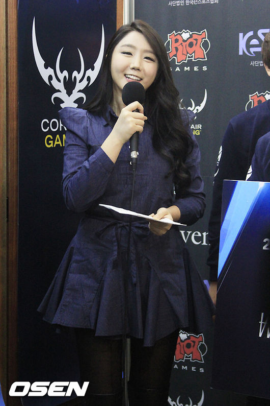 전남과학대학교 '드림'(이하 CTU)은 8일 오후 서울 강남구 역삼동 인벤 강남스튜디오에서 벌어진 '2015 리그오브레전드 대학생 배틀(이하 LCB)' 결승전에서 강원대학교 '강대는강대라강대해(이하 강원대)'를 2-1로 이겼다. 1세트를 내줬지만 뒷심을 발휘하면서 2, 3세트를 연달아 따내면서 우승컵을 차지했다. LCB 인터뷰를 진행한 레이싱모델 김하음이 전남과학대학교 우승을 축하하고 있다. / scrapper@osen.co.kr
