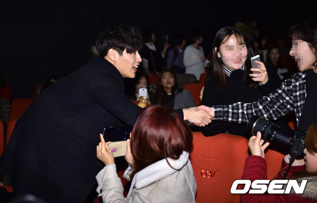 배우 강하늘이 팬들과 악수를 나누고 있다.