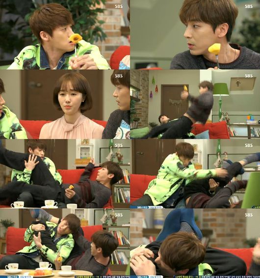 두 사람은 미션을 두고 티격태격하다가 결국 육탄전을 벌였다. 이들은 서로를 다리로 감싸도 발을 무는 등 격한 행동으로 웃음을 자아냈다.