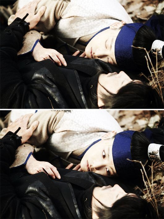 9일 MBC 월화특별기획 ‘빛나거나 미치거나' 제작진 측은 오연서(신율 역)가 장혁(왕소 역)의 품에 안겨 겨울 숲에 누워있는 사진을 공개했다.