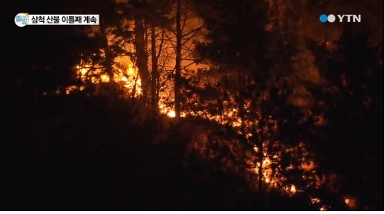 [OSEN=이슈팀] 삼척산불이 이틀째 잡히지 않고 있다. 소방당국은 불길을 잡기 위해 9일 오전 다시 진화작업에 들어갔다.