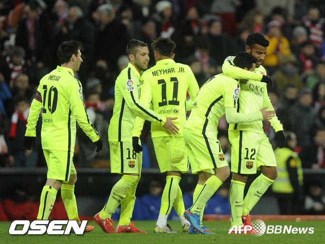 바르셀로나는 9일(이하 한국시간) 스페인 빌바오에서 열린 2014-2015 프리메라리가 22라운드 빌바오와 원정경기서 5-2로 승리를 거뒀다. 바르셀로나는 'MSN' 라인이라 불리는 리오넬 메시, 루이스 수아레스, 네이마르가 득점포를 신고하며 승전보를 전했다.