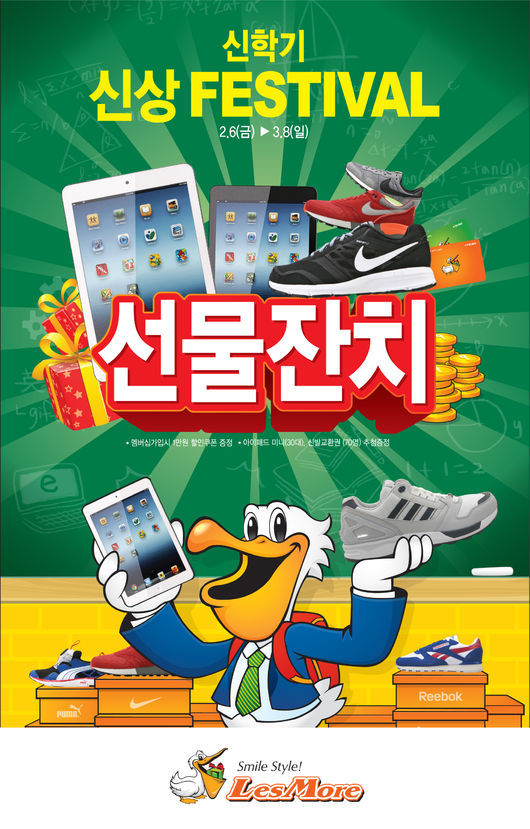 국가대표 슈즈 멀티숍 레스모아가 다음달 8일까지 신학기 신상 페스티벌을 실시한다.