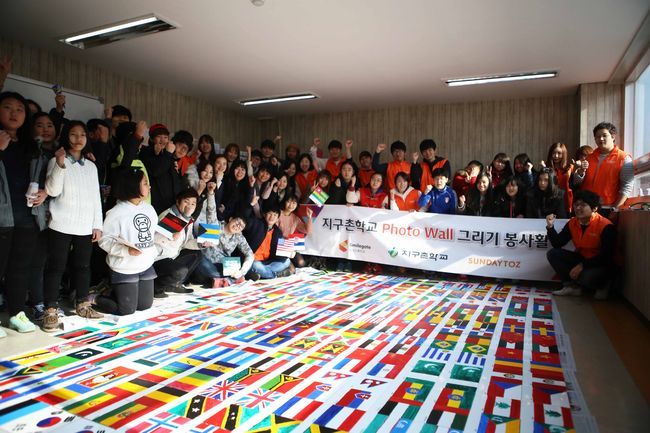 안가람 선데이토즈 과장은 “나태해지기 쉬운 주말에 의미 있는 일을 함께 할 수 있어 기쁘고, 지구촌학교 어린이들이 전 세계 국기로 가득 찬 이 벽을 볼 때마다 꿈과 희망을 떠올리기를 바란다”고 말했다.