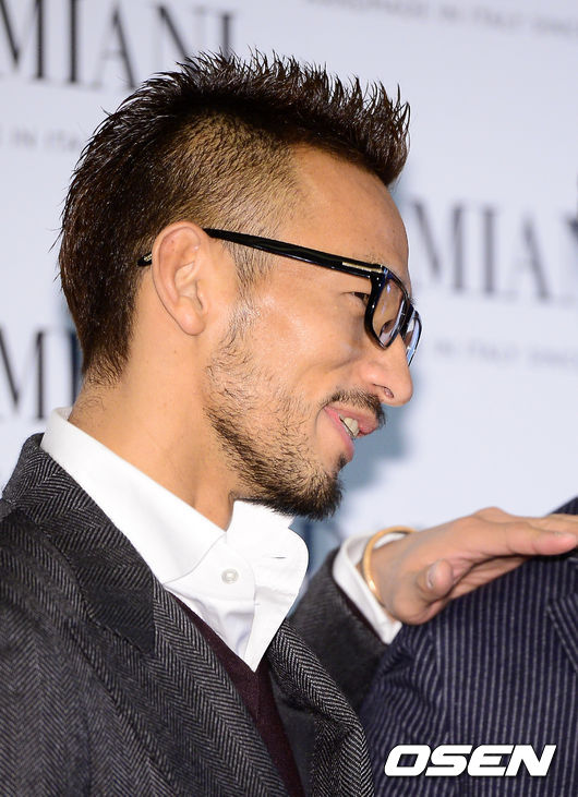 나카타 히데토시가 포즈를 취하고 있다.