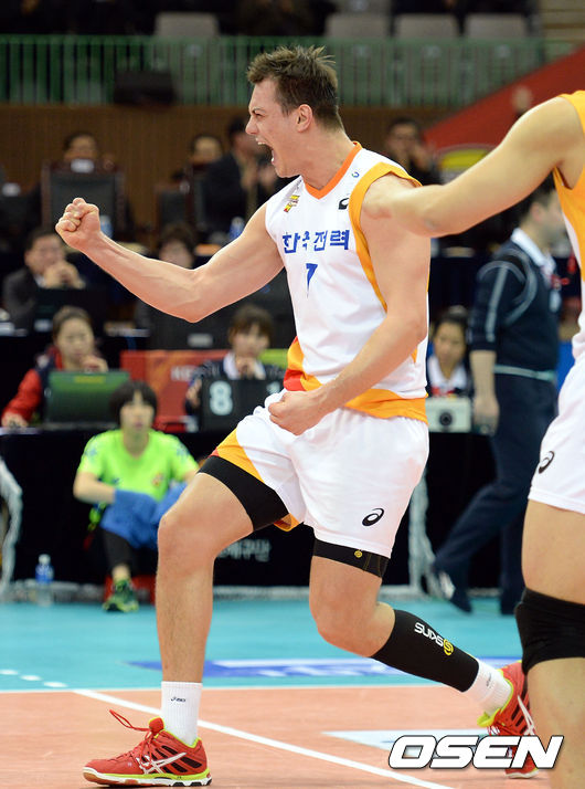 2세트 한국전력 쥬리치가 득점을 올린 뒤 기뻐하고 있다.