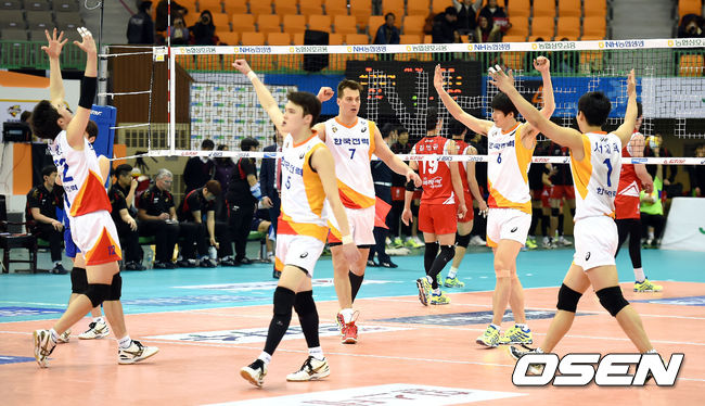승리를 거둔 한국전력 선수들이 기뻐하고 있다. / youngrae@osen.co.kr