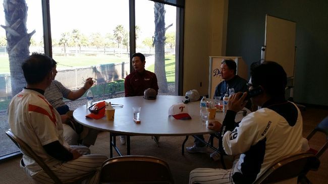 미국 애리조나주에서 전지훈련 중인 5개 구단(NC 다이노스, LG 트윈스, 롯데 자이언츠, 두산 베어스, 넥센 히어로즈) 감독들이 모처럼 한 자리에 모였다. 피닉스에서 2시간 가량 떨어진 투산에서 홀로 훈련 중인 NC 다이노스 김경문 감독이 9일(한국시간) 피닉스 인근 글렌데일에 있는 LA 다저스 스프링 캠프에서 훈련 중인 LG 트윈스와의 원정 연습경기를 갖기 위해 찾자 근처에서 훈련 중이던 감독들이 한 자리에 모여 인사들을 나누게 된 것이다.