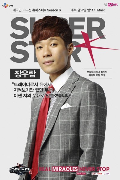 과거 유명 보컬트레이너였던 장우람은 늦은 나이임에도 불구하고 자신의 꿈을 이루고자 마지막 기회라고 생각했던 '슈퍼스타K6'에 도전했다. 송유빈과 함께 톱3 문턱에서 안타까운 탈락의 고배를 마셨지만 미려한 음색과 뛰어난 가창력으로 이승철, 윤종신, 김범수 등 심사의원들로부터 좋은 평가를 받으며 뛰어난 경쟁자들을 물리치고 톱4까지 올랐다. '슈퍼스타K6' 시즌 중 임도혁과 함께 부른 박효신의 '야생화'가 발매와 동시에 각종 음원차트 1위를 휩쓸며 화제가 된 바 있다.