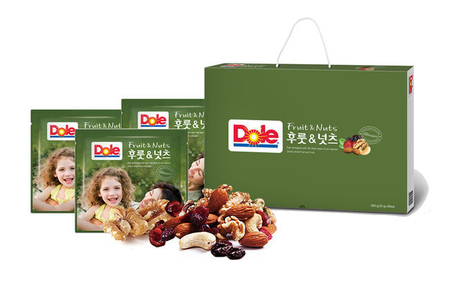 '돌 후룻&넛츠 프리미엄 선물세트'는 수입한지 180일미만의 견과류와 건과일 만을 엄선하여 소포장 패키지에 담은 '후룻&넛츠' 28개입로 구성됐다.