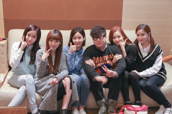 걸그룹 크레용팝이 작곡가 신사동 호랭이와 함께 찍은 사진을 공개해 컴백곡에 대한 기대감을 높였다.