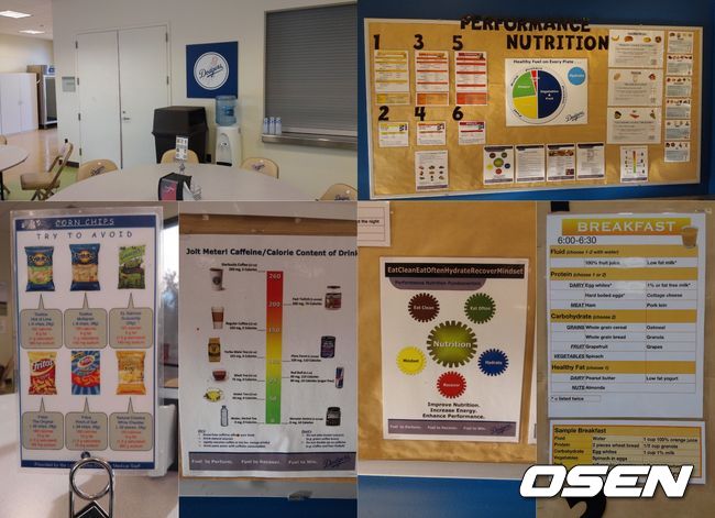 그리고 LG 캠프 곳곳에서 메이저리그 구단의 선수관리 노하우를 엿볼 수 있다. 식당에서는 밥만먹는 게 아니라 평소 식습관이 우리 몸에 어떤 영향을 주는지 확인할 수 있도록 곳곳에 도표가 준비되어 있다.