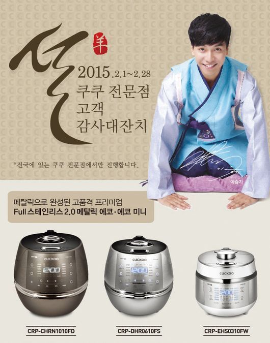 건강생활가전기업 쿠쿠전자(대표 구본학, www.cuckoo.co.kr)가 민족 최대의 명절 설날을 맞이해 오는 28일까지 쿠쿠전문점에서 인기상품 특별할인 및 사은품을 증정하는 '2015 설맞이 쿠쿠전문점 고객 감사대잔치'를 진행한다.