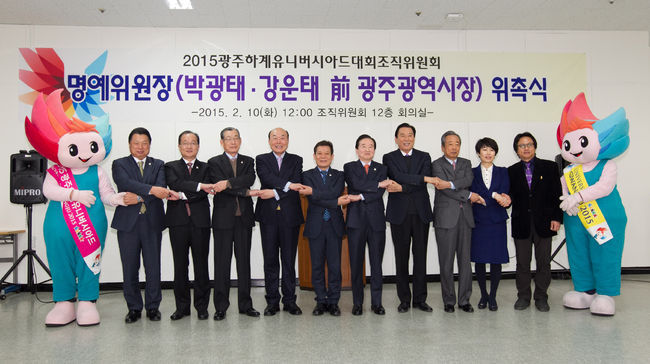 조직위는 10일 낮 12시 조직위 회의실에서 윤장현 위원장을 비롯한 조직위 주요 임, 직원이 참석한 가운데 ‘2015광주하계유니버시아드대회조직위원회 명예위원장 위촉식’을 갖고 박광태, 강운태 前 시장에게 위촉장을 수여했다.