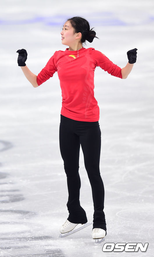 10일 오후 서울 목동아이스링크에서 진행된 '2015 사대륙 피겨선수권 대회' 여자 피겨 싱글 연습세션에서 리지준이 연기를 펼치고 있다.
