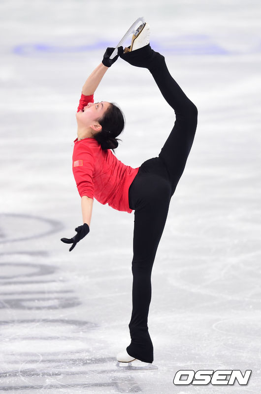 10일 오후 서울 목동아이스링크에서 진행된 '2015 사대륙 피겨선수권 대회' 여자 피겨 싱글 연습세션에서 리지준이 연기를 펼치고 있다.