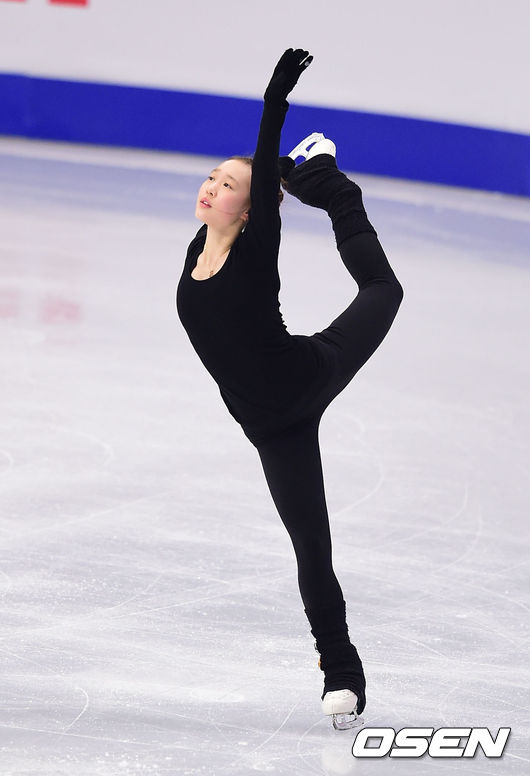 10일 오후 서울 목동아이스링크에서 진행된 '2015 사대륙 피겨선수권 대회' 여자 피겨 싱글 연습세션에서 박소연이 연기를 펼치고 있다.