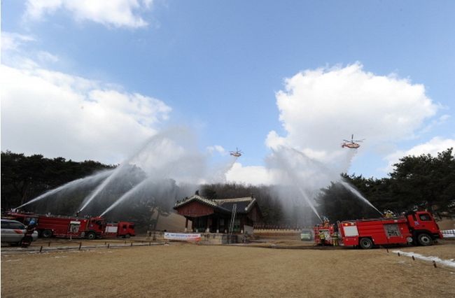 [OSEN=이슈팀]문화재 방재의 날을 맞아 주요 문화재 현장에서 재난대응 훈련이 시행됐다. 문화재 방재의 날에는 재난 시 초기 대응과 진화훈련에 집중해 피해를 최소화하는 것에 초점을 맞췄다.