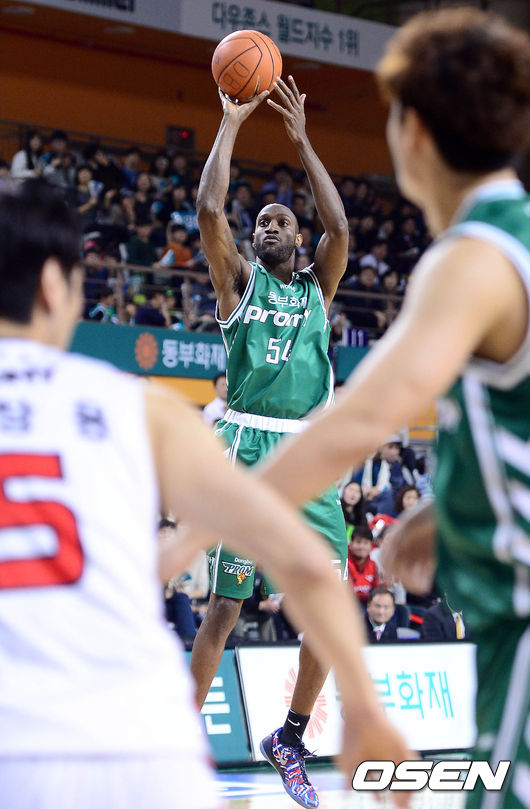 10일 오후 강원도 원주 종합체육관에서 열린 '2014-2015 KCC 프로농구' 원주 동부와 울산 모비스의 경기 3쿼터 리처드슨이 슛을 시도하고 있다.