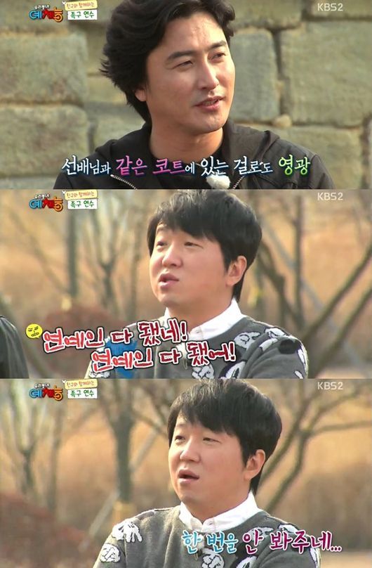 이날 방송에서 안정환은 김병지와의 족구 실력 비교에 대해 “예상은 하고 싶지 않고 선배와 한 코트에 있다는 것만으로도 영광이다”라고 말했다.