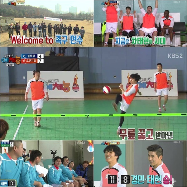 KBS 인재개발원에서 열린 족구 연수 토너먼트는 블루팀(주장 강호동)과 오렌지팀(주장 정형돈)으로 나뉘어 진행됐다. 이날 예선전을 거쳐 강호동-김병지팀과 홍경민-차태현팀이 준결승에 올랐다. 초반, 강호동-김병지팀이 여유있게 먼저 득점했지만, 차태현은 공격의 찬스가 오자 허를 찌르는 공격을 했고, 홍경민은 거짓말 같은 신들린 서브로 말로만 듣던 '족구왕'의 면모를 드러내기 시작했다.