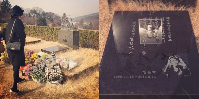 그는 울랄라세션 故 임윤택의 묘비와 그 위에 딸 리단이 올려놓은 젤리 사진과 함께 단정한 차림으로 묘비를 방문한 자신의 모습을 공개했다.