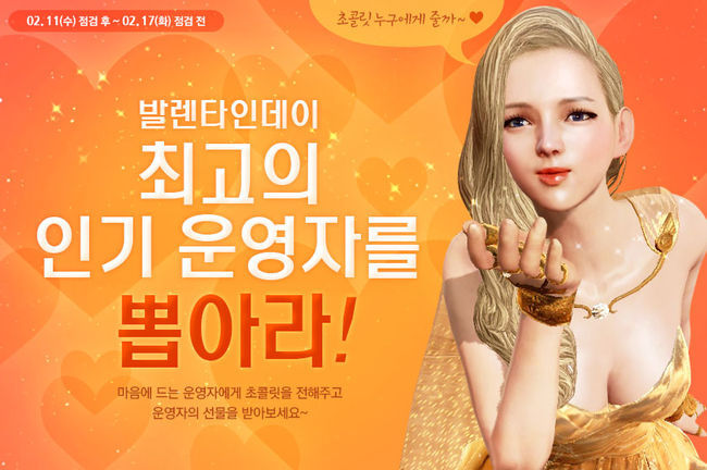 김정하 ‘아키에이지’ 사업팀장은 “좋아하는 사람에게 초콜릿을 주는 발렌타인데이를 보다 재미있게 즐길 수 있도록 운영자 인기투표 형식으로 이벤트를 기획했다”며 “공약 혹은 매력, 특기가 마음에 드는 운영자에 투표해 이벤트 이후에도 공약 이행을 통한 혜택을 받으실 수 있기 바란다”고 전했다.