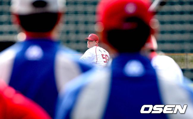 '퍼펙트맨' KIA 험버의 첫 라이브피칭,'관심을 한 몸에~'