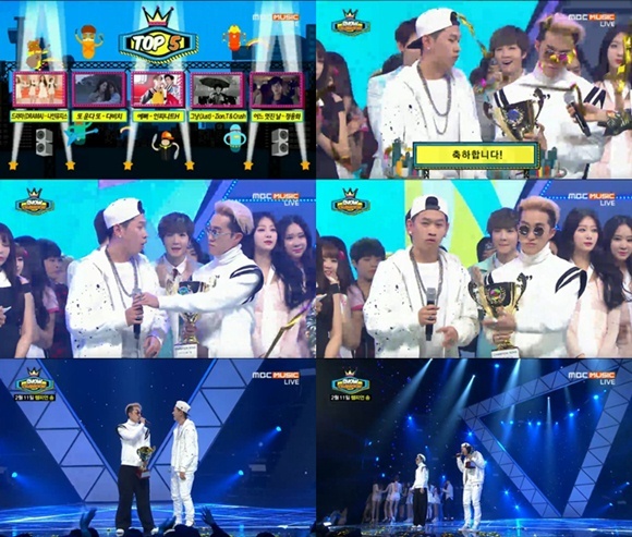 자이언티&크러쉬는 11일 오후 방송된 케이블채널 MBC뮤직 '쇼! 챔피언'에서 '그냥'으로 1위에 올랐다.