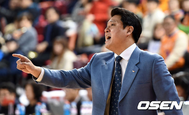 2쿼터 SK 문경은 감독이 작전을 지시하고 있다.