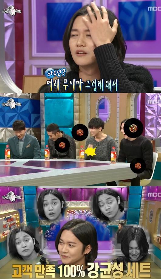 등장 초반부터 김구라는 강균성의 단발머리를 디스했고, 강균성은 "방송 들어오기 전 고민 많이 했다. 머리를 귀 뒤로 넘길지, 말지.."를 이야기하며 머리를 풀었다.